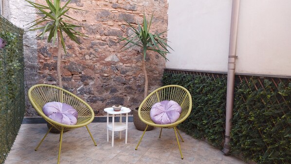 - Gartenmöbel, eine Pflanzenwand und Rauchverbot in der Unterkunft