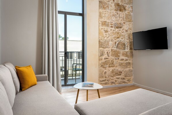 Neoclassical newly renovated building at the entrance of old town. At a very central location with all shops around and restaurants and cafe just few steps away. Venetian port and old town front of your feet.