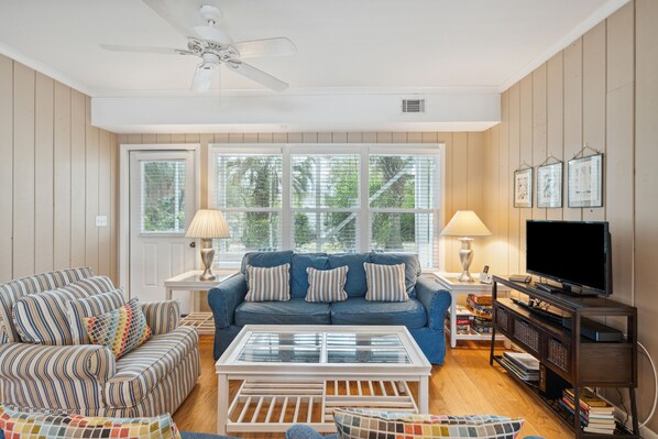 Die Veranda verfügt über eine geschlossene Außendusche mit heißem und kaltem Wasser. Auf der Rückseite des Hauses befindet sich eine private und geräumige, abgeschirmte Veranda mit einem Gasgrill und Möbeln zum Speisen im Freien und Entspannen. Die Waschmaschine / Trockner befinden sich hinter überdachten Türen auf der Veranda. Es gibt eine aktualisierte Küche mit Edelstahlgeräten und Granitoberflächen, die das Kochen zu Hause vereinfachen. In jedem Schlafzimmer und im Wohnzimmer befindet sich ein Flachbild-Kabel. Wi-Fi und Bettwäsche inklusive.