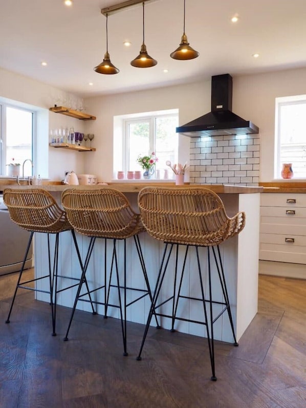 There is an open plan kitchen, diner and living area and a separate cozy snug room.