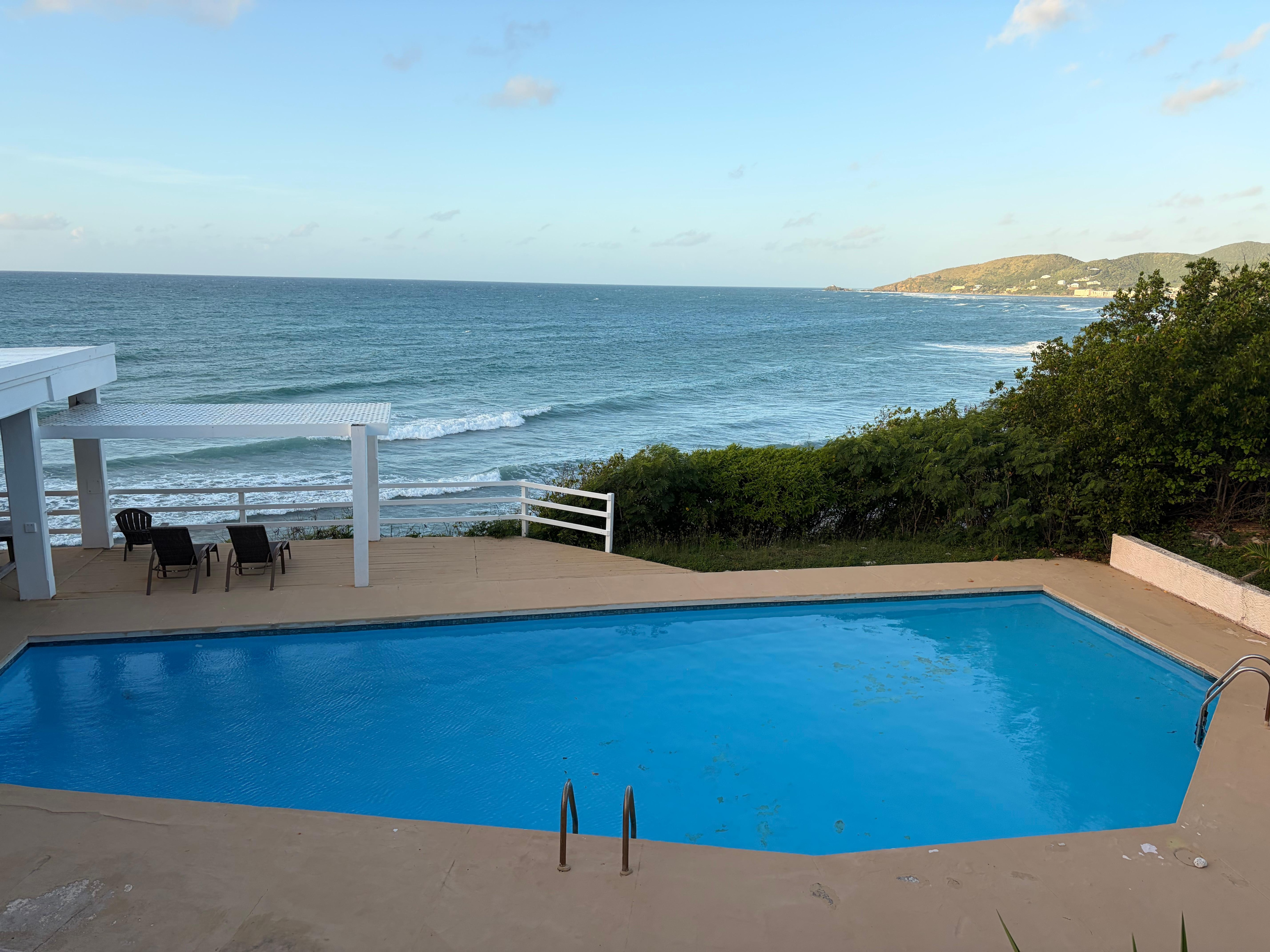 You will be renting the entire property with a private pool, which sits on a 0.8 acre land facing the ocean and consists of two units: