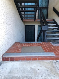 Looking down at the condo from ground level side walk.