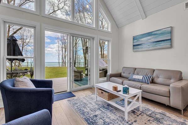 Discover our new modern cottage on Lake Michigan’s coast, nestled on a spacious 3.5-acre lot. Outdoors, unwind in the seven-person hot tub or enjoy the expansive backyard. Inside, every room offers stunning views and tranquil scenes, complemented by modern amenities and stylish decor. Perfect for a serene escape, this cottage promises a blend of luxury and nature.