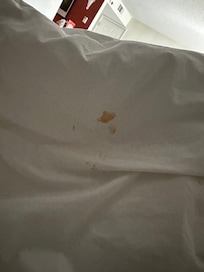 Besonders erschreckend: Blut an Bettwäsche und Decke. Trotz schriftlichem Hinweis wurde das Bett nicht gewechselt.