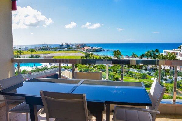 My husband and I and another couple recently stayed at this condo in Maho. The condo is spacious with a great view of the terrace garden, pool, Maho beach and the runway. The condo is very sound-proofed. We only heard the planes when we were on the balcony. Check in was very easy as we were greeted in the lobby. It is located in a great area with many restaurants, bars, casino and a grocery store. We were provided with beach, pool, and bath towels, but the condo did not have any wash cloths. We would rent this condo again. Do not hesitate to rent this condo - you will not regret it!