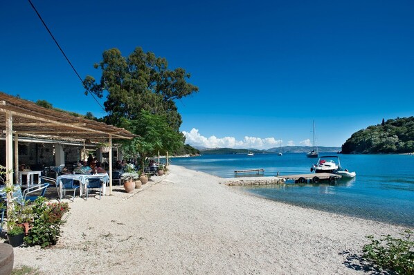 Agios Stefanos has a good selection of tavernas and small cafes along the seafront where you can watch the fishing boats come and go. Kerasia, which is a further 3 minute drive away from Agios Stefanos has a tavern and café on the water front. The resort of Kassiopi is a 10 minute drive away, which has a wide range of tavernas, bars and cafes.