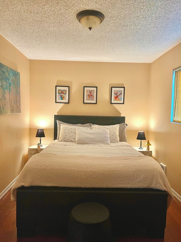 This thoughtfully designed home blends comfort and style to create a truly memorable getaway. Inside, you’ll find two spacious, sunlit bedrooms, each featuring plush queen beds adorned with premium linens for an exceptional night’s sleep. The elegant bathroom boasts a luxurious walk-in shower with high-end fixtures and beautifully tiled walls, offering a spa-like oasis.