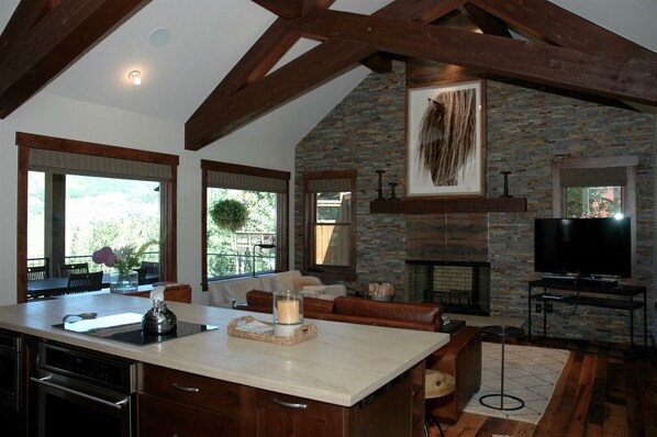 Die modernste Küche und das Wohnzimmer sind perfekt für einen romantischen Abend des Kochens und entspannen in der Privatsphäre Ihres eigenen Hauses. Das Deck aus dem Wohnraum mit Sitzgelegenheiten im Freien bietet die perfekte Kulisse für ein Kerzenlicht Abendessen, Bademantel Kaffee und Frühstück oder Cocktail-Stunde. Setzen Sie die Stimmung mit Ihrer Lieblingsmusik aus der SONOS Soundbar, mit separatem Sound im Wohnraum und Schlafzimmer für mehr Ambiente. Dann nehmen Sie in Ihre eigenen privaten Ansichten von Oh Be Joyful, Scarps Ridge, Snodgrass, Smith Hill & Meridian Lake.