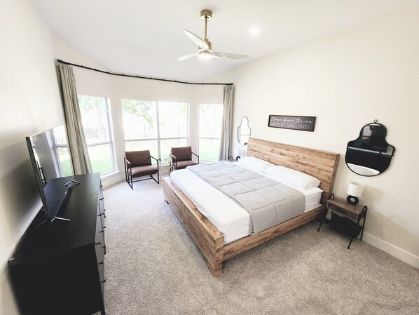 Enjoy 3 spacious bedrooms and 2 full bathrooms with a King Bed, a Queen, and a full/twin bunk bed that comfortably sleeps 6! Master bedroom features a large garden tub and standing shower with a huge walk-in closet.