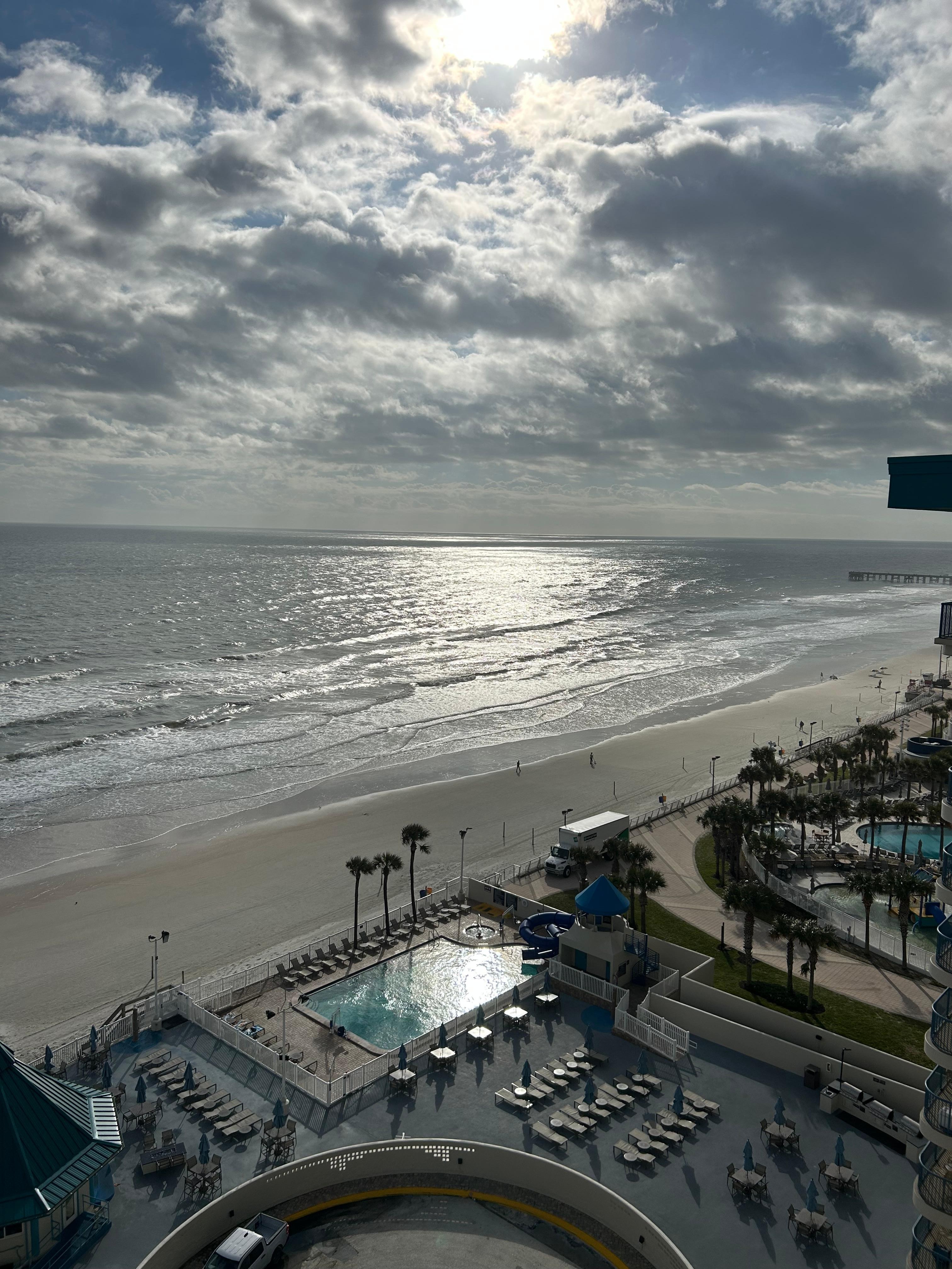 The room was lovely and had a view of the ocean and river. The pool area was very nice. The lobby area was very spacious and inviting if you wanted to hang out. The only complaint was the entrance to the hotel. The side walk didn’t exist due to construction and one had to cross the street to park. This was a high traffic area making it difficult to get car and then go back across the road to load luggage.