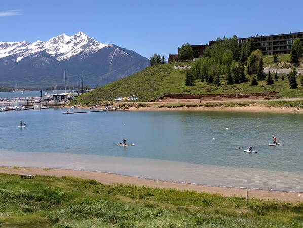 In the summer walk to the Dillon Amphitheater for concerts from June into September and the Dillon Marina for boat, sailboat, kayak and SUP rentals. On the Summit County bike/rec path which connects all resorts and towns with over 55 miles of paved path. The free Summit Stage bus service is just 2 blocks away and connects all towns and resorts. The unit is directly on Lake Dillon and near the beach for SUP, and kayak rentals.