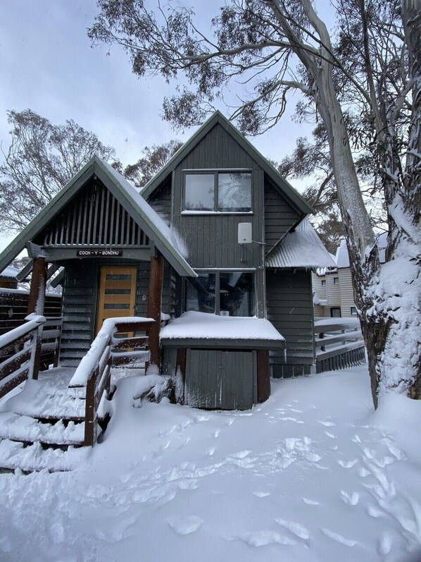 Coch'Y'Bondhu is located in a quiet courtyard backing onto the reserve. Just a short walk to the Dinner Plain ski run, cross country and mountain bike tracks and to the shops and restaurants. The bus stop to Mt Hotham is also a short distance away. The property has been updated with new floor coverings and a luxurious fully renovated bathroom. The ground floor consists of entry/drying area. The kitchen, living and dining areas complete with slow combustion unit. Upstairs you'll find the main bedroom with the open mezzanine floor with a bunk beds and the bathroom. Coch'Y'Bondhu sleeps a maximum of four people. This cabin is pet friendly upon application with a $100.00 fee per dog. No more than 2 dogs please.