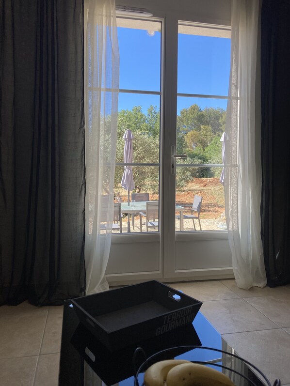 Sarine and Sylvain will welcome you under their roof, in their very recent gîte (May 2022) of 40 m² air-conditioned with above-ground swimming pool. Independent entrance, view of olive grove.