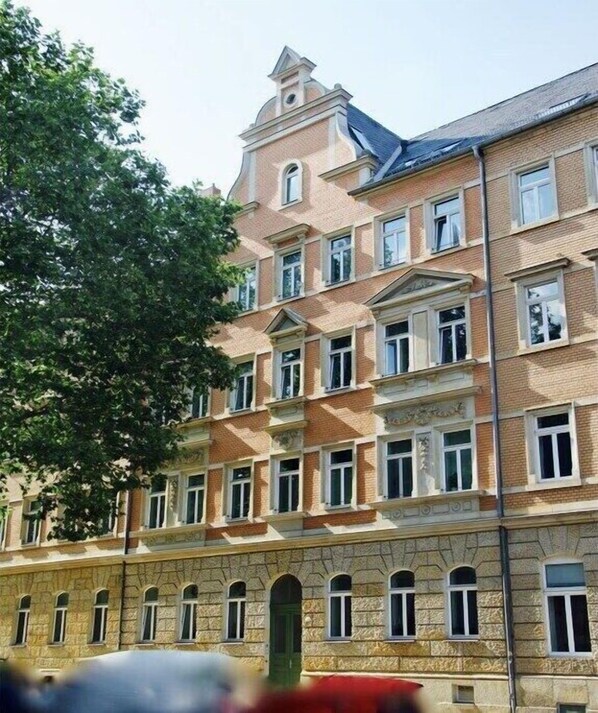 Die rauchfreie Ferienwohnung, im dritten Stock eines sanierten Altbaus der Gründerzeit, erreicht Ihr über einen Fahrstuhl im Treppenhaus. Sie besteht aus einem geräumigen Wohnzimmer mit Essbereich, zwei individuell eingerichteten Schlafzimmern, einer voll ausgestatteten Küche mit Tresen, einem Balkon, einem Bad mit Badewanne, Duschmöglichkeit und Waschmaschine. In den Schlafzimmern gibt es jeweils einen Smart-TV, auf dem Ihr, neben den analogen und digitalen TV Sendern, die Möglichkeit habt Euch mit eigenem Zugang bei Netflix einzuloggen. Im Wohnzimmer geht das ebenfalls mit Netflix, Disney+ und Amazone Prime. Der Flur bietet mit original Sitzen aus der Leipziger Oper und einer Landkarte von Dresden und Umgebung ebenfalls Platz zum Stöbern.