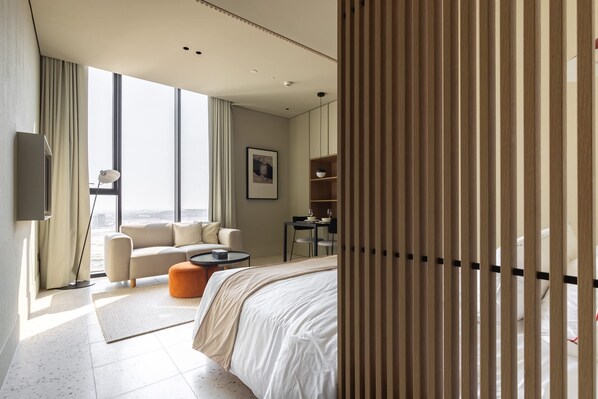 In den Zimmern von Stylish Studio at Upside Living by Simply Comfort gibt es separate Schlafzimmer.