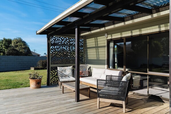 Warm und komfortabel, der Bach ist gut isoliert, beheizt und verfügt über eine moderne Küche. Sie sind nur 2 Minuten zu Fuß von einem der schönsten Strände Neuseelands und 15 Minuten vom Zentrum von Dunedin entfernt. Sie können auf der Terrasse grillen oder einen 5-minütigen Spaziergang zu einem ausgezeichneten Fish & Chip-Shop machen. Wir sind haustierfreundlich und das Grundstück ist gut eingezäunt, so dass Ihr Hund sicher auf dem Rasen herumlaufen kann.