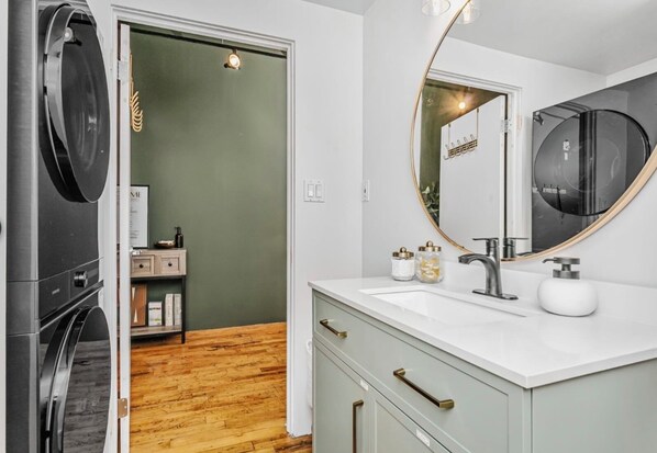 Nahe von Edmonton City Centre und Kongresszentrum Edmonton gelegen, bietet Downtown Two-Level Loft | Private Gym + Parking | Steps From Roger’s Place Annehmlichkeiten wie eine Wäscherei.