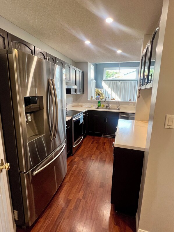 This spacious Luxury 3BR/2.5BA house with Hot Tub is located in Grandville area near West Edmonton Mall (WEM - 10 mins drive) with king, queen and full/double sized bed in bedrooms, and comfy sleeper couches in living room. Great amenities, including washer/dryer, kitchen appliances & cookware, office space, 50'' TV with Netflix, YouTube in Living Room. The kitchen is equipped with most of cookware. Laundry available to guests. They are located on the main floor.