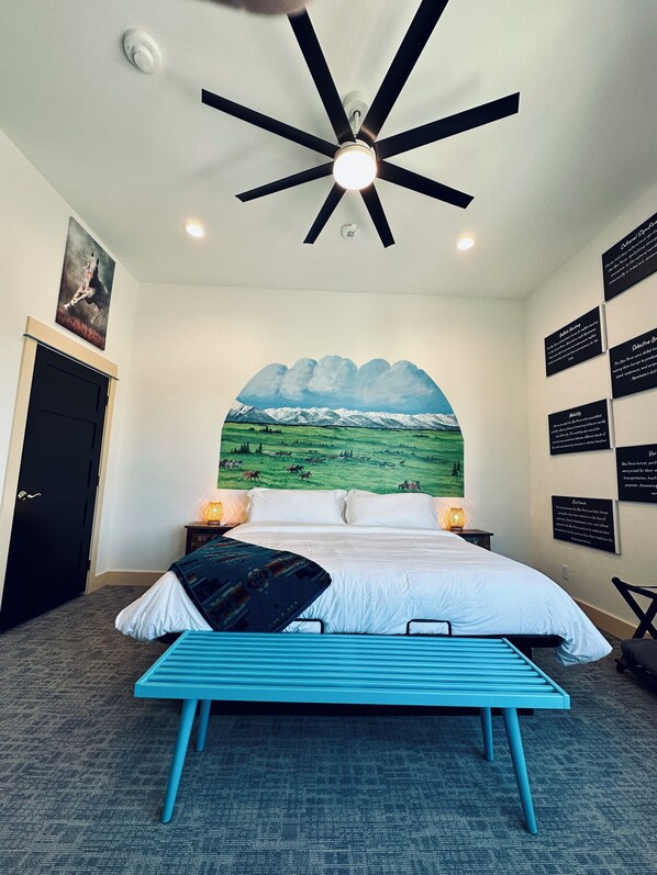 Stay at Granite Butte, a luxury 2nd FL condo in Enterprise's historic Litch Hotel, blending modern comfort, vintage charm and a Nez Pierce Theme. It features 11 ft ceilings, wood floors, tiled bathroom, quartz countertops, locally handmade tableware, and AC.