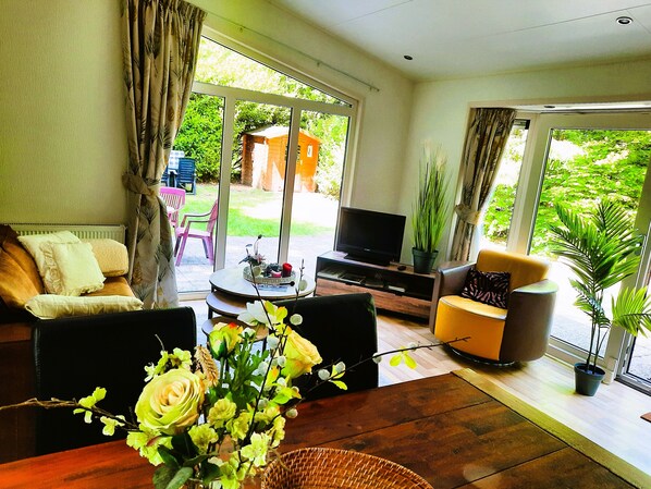 Sauna, Wäscherei und ein Garten – das bietet dir dieses Chalet (Rauchen nicht erlaubt).