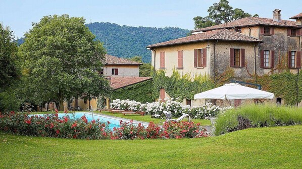 The swimming pool is 7 meters (23 feet) large by 15 meters (50 feet) long, from 1 meter (3.3 feet) to 2.5 meters (8 feet) deep. The area is equipped with a table, chairs, a sun umbrella, deck chairs, sun loungers and an external shower. From the swimming pool you will enjoy a spellbinding view of the greenery and of the garden. The pool is open from the beginning of May until the beginning of October.