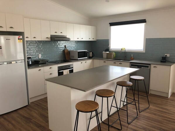 We fit 2 young families in easily and will be staying again. Clean, tidy and quiet accommodation with all you need for a fun summer holiday. Missing some furnishings and the ‘frills’ but made our time less stressful when there was less for our 1-4 y/o toddlers to break. Convenient short walk to beach, bowling club and 1km to playground and shops. 👌🏼