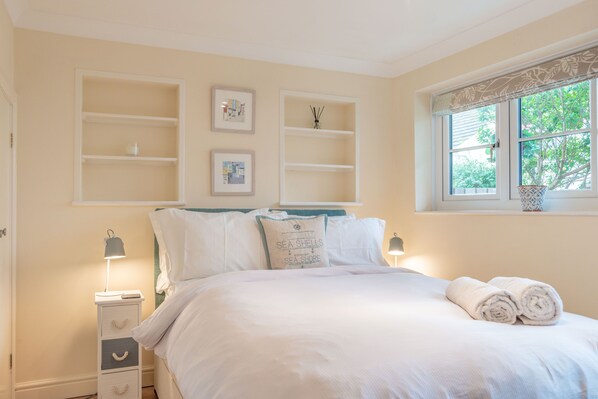 Diese 1-Zimmer-Wohnung hat so einen schönen Charakter, wie Sie von den Fotos sehen können. Das offene Wohnzimmer / Küche / Esszimmer mit seinem hübschen Schiebefenster blickt auf eine Seitenstraße. Ausgestattet mit allen offensichtlichen Kühlschrank mit Gefrierfach Herd Backofen und Mikrowelle hat es auch Geschirrspüler und Waschmaschine / Trockner. Das hübsche Schlafzimmer mit Doppelbett und eigenem Duschraum hat eine Tür, die direkt in den großen Hofgarten auf der Rückseite führt, wo sich ein kleiner Tisch und Stühle befinden.