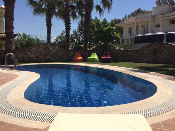 Die Villa Yakamoz ist eine Luxusvilla mit 3 Etagen, 4 Schlafzimmern und 4 Badezimmern, die auf dem exklusiven und begehrten Palmenhain in Calis liegt. Die Villa befindet sich auf einem eigenen Grundstück mit eigenem Pool und Garten mit Toren und Parkplatz. Die Villa liegt an einer ruhigen Wohnstraße, an der nur gelegentlich Passanten vorbeikommen. Die Villa verfügt über WLAN und ein komplettes englisches TV-Paket mit Skysports.