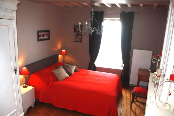 Im ersten Stock, offenes Schlafzimmer mit 160 cm Bett, zwei Nachttischen, einem kleinen Schreibtisch und einem Kleiderschrank. Ein Badezimmer mit Waschbecken, Dusche, Waschmaschine. Die Toiletten sind getrennt.