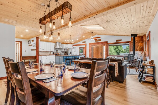 As you can see from the pix, the kitchen/great room is first rate, and once you get coals in the wood burning stove it heats the area up nicely. Can't say the same for the rest of the heating though, but there are lots of blankets in the bedrooms. Perfect location for skiing at Snowbowl and close to good food and town. Still working on some renovations but not a problem for the stay. Fenced in back yard for the pup was a definite plus. Lots of toys for young kids. Owners VERY responsive. Will be back!