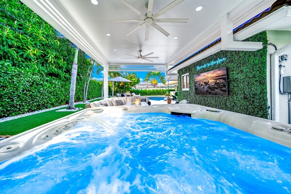 LUXURY HOME WITH ALL YOUR BELLS AND WHISTLES! BEAUTIFULLY FURNISHED IN THE HEART OF FORT LAUDERDALE. THIS HOME INCLUDES 3 BEDROOMS & 2 BATHROOMS, HEATED POOL, HOT TUB WITH MASSAGE JETS, OUTDOOR GAS FIREPITS, OUTDOOR TVS, PERGOLA WITH SEATING, LOUNGE CHAIRS, PATIO CUSHIONED SEATING, OUTDOOR FANS AND LIGHTING, 6 SEATER GOLF CART, GARAGE GYM, YARD GAMES, TURFED YARD AND MUCH MORE! 1 MILE TO BEACH, WATERSPORT ACTIVITIES, FINE DINING, & UPSCALE SHOPPING. FULLY PRIVATE AND FULLY FENCED IN BACKYARD.