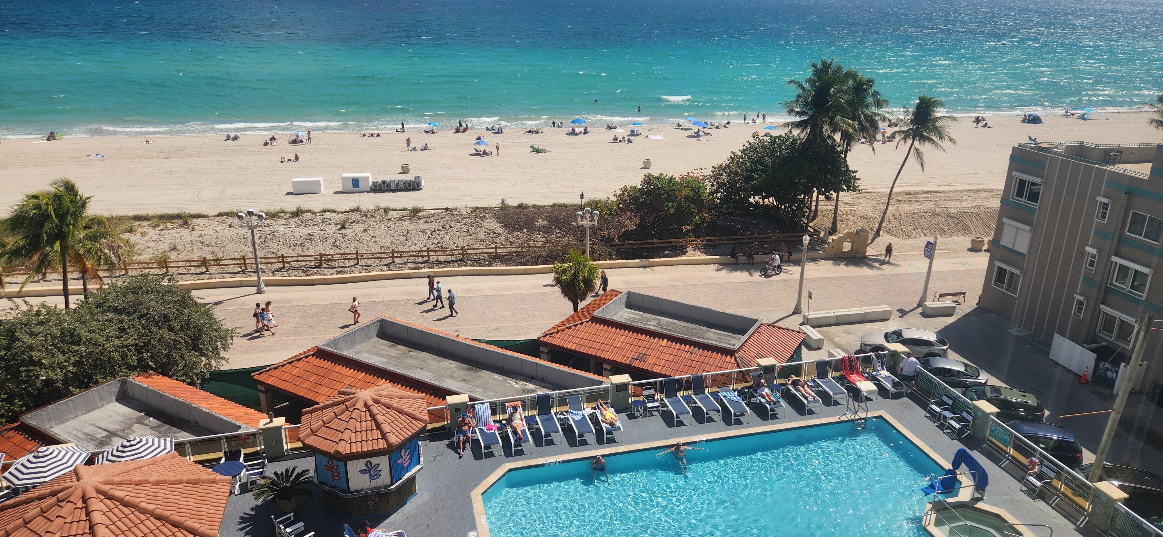 Very beautiful ocean view, right on the broadwalk/ocean. Pool on property with friendly people. Kitchenette was nice. Samy was the most helpful, pleasant person. I wish he was my neighbor back home. Shout out to Paul (security also) for his helpfulness as well. These two men are real gems.