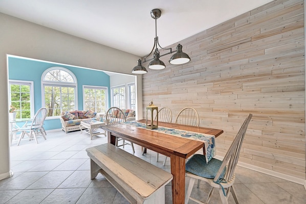 Living & Dining This home offers ample space for large groups with two separate living areas, perfect for providing everyone with their own space to unwind. The fully equipped kitchen flows into the dining and living spaces. There is also a dedicated laundry room with a washer and dryer for your convenience.