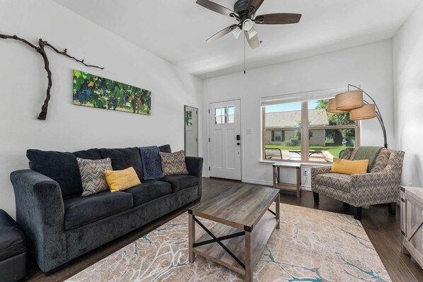 Welcome to Hill Country Vine Haus, a stylish 2-bedroom, 2-bath condo located on E Highway with easy access to the 290 Wine Trail. Enjoy a cozy living space, fully equipped kitchen, and all the comforts of home just minutes from Fredericksburg’s top wineries and downtown attractions. Perfect for a relaxing getaway in the heart of Texas Wine Country.