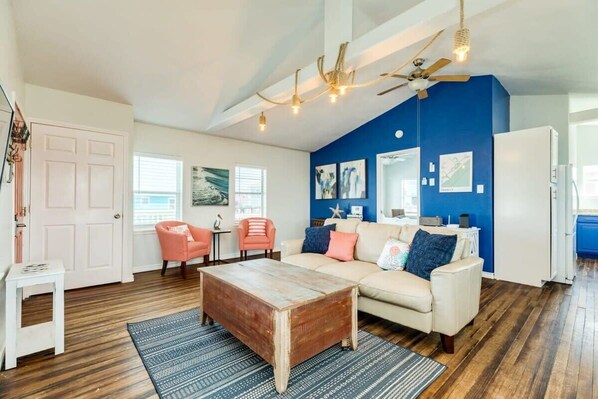 If you are looking to enjoy all the best of the island S's (sun, sand, surf, and sea breezes), this is the perfect seaside spot for you! The beach access is right on the street! Sun & Salt s a cheery and airy beach bungalow with SO much coastal charm! From the beautifully appointed and recently decorated inside to the extensive decking and patio outside, you are sure to have a relaxing escape from the hustle bustle of day to day life in style!