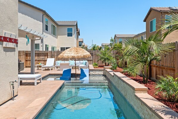 Inspired by Cancun Mexico, this stylish place in Fresno ca is perfect for group trips. It is Designed to make you feel like you're at a resort whether you are here on vacation, visiting family, or on business. professionally cleaned and managed to the highest standards. Features an amazing, heated pool/spa with ambient lighting and exotic palm trees. Book now to secure your dates as reservations are extremely limited