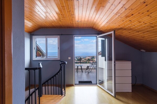 Going up the stairs to the second floor, you'll find another bedroom with a walk-in closet, a double bed, a complete bathroom, and a wonderful terrace with a breathtaking view.