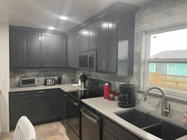 Entfliehen Sie dem Lärm und der Menschenmenge von Galveston und entspannen Sie sich bei der Brise und dem Rauschen der Wellen in diesem Strandhaus in Sea Isle mit dem Namen "Beach Haven". Sand & Surf sind nur wenige Schritte entfernt. Genießen Sie vom geräumigen Deck auf der zweiten Ebene einen herrlichen Blick auf den Strand und beobachten Sie, wie Ihre Familie und Freunde vom Wohnzimmer und vom Deck aus im Sand spielen (siehe Bilder für Ansichten). Ausreichend große Fenster erlauben auch einen ähnlichen Blick auf den Strand, jedoch bequem von drinnen. Vier (3 Schlafzimmer im Erdgeschoss + 1 freistehendes Zimmer im Erdgeschoss mit 1/2-Bad) Schlafzimmer für 10 und 2 Personen. 5 Badezimmer bedeuten minimales Warten.