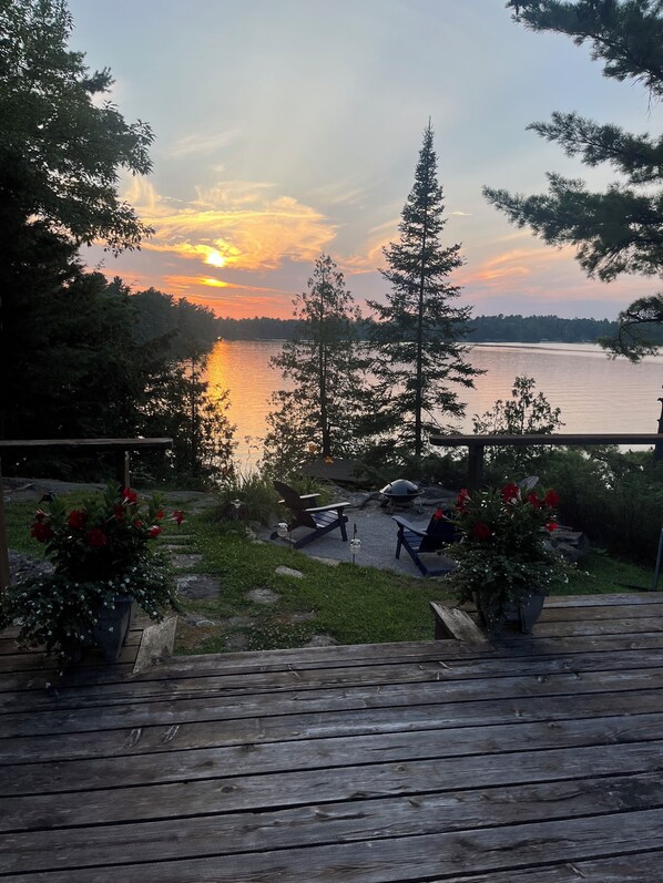 This Muskoka Island Cottage has style of its own. Nestled in the trees on the east side of Grand Island, behind the windswept pines sits this historic double A Frame. Cathedral ceiling living room, cozy wood burning fireplace in the family room and panoramic views overlooking Six Mile Lake. The main sleeping area is on the second floor. The spacious tiered deck off the living room is perfect for entertaining family and friends with an incredible multi-exposure view; sun all day and stunning sunsets. Perfect for night sky stargazing. Enjoy a swim and then relax in the sauna right at the dock where many a fish has been caught. Depth at the end of the dock is roughly nine feet and four feet at the ladder. Perfect for a good dive into the water before/after your sauna. Glide along the water with one of the canoes or kayaks and explore the many small islands that dot Six Mile Lake. Canoe twenty minutes to the Wawautosa Trading Post Marina and At the Lake Muskoka Shop where you can buy some Kawartha Lakes ice cream in a waffle cone or pick up some last minute groceries. Our cottage is situated on an island, five minutes from the Wawautosa Marina. We will pick you up at the public launch, where there is free parking, and ferry you to and from the cottage on the day of your arrival and departure. During your stay we can arrange to have a boat take you to the marina and back at a cost of $50. If you have a boating license, rentals are available at the marina. We can provide you with more information if needed. For boat owners, there is a public launch and parking next to the Wawautosa Marina. For more details check out the following websites for: https://www.wawautosa.ca/ and https://www.atthelakemuskoka.com/