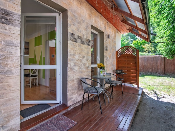 "2 osobowy", 2-Zimmer-Haus 35 m2, im Erdgeschoss. Einfach und zweckmässig eingerichtet: Wohn-/Esszimmer mit Sat-TV. Ausgang zur Terrasse. 1 Zimmer mit 1 franz. Bett. Kochnische (2 Kochplatten, Mikrowelle) mit Essecke. Dusche/WC. Heizung, E-Heizung, Boiler (50 Liter). Grosser Balkon, Terrasse 12 m2. Terrassenmöbel, Liegestühle (2). Sicht auf die Ortschaft. Zur Verfügung: Internet (WLAN). Parkplatz beim Haus. Maximal 2 Haustiere/Hunde erlaubt.