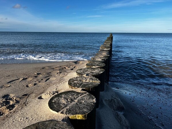 Nur 350m vom Strand entfernt liegt diese gemütlich und modern eingerichtete 3-Raum-Maisonette-Wohnung im 2. Obergeschoss mit ca. 55 m² Wohnfläche und einem sonnigen Südbalkon. Die sehr familienfreundliche Wohnung kann mit bis zu 4 Personen genutzt werden.(5. Person auf Anfrage). Zwei separate Schlafzimmer bieten Platz für 4 Personen. Praktisch erreichbar befindet sich vor dem Objekt ein abschließbarer Außenabstellraum, der bis zu 4 Fahrrädern Platz o.ä. bietet. Der Wohnung ist ein kostenloser Stellplatz Nr. 8 zugeordnet. Ebenso verfügt die Wohnung über kostenloses WLAN und eine Waschmaschine steht Ihnen auch kostenlos zu Verfügung.