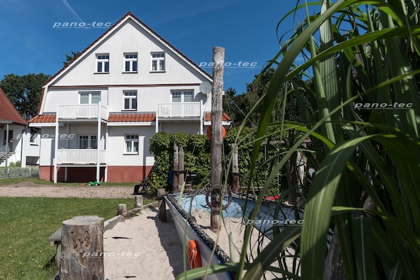 Die Ferienwohnung ist geschmackvoll eingerichtet und gehört zu einem Gästehaus mit insgesamt 4 Ferienwohnungen. Unsere Villa wurde 2013 komplett renoviert und neu möbliert. Im Keller stehen eine Waschmaschine und ein Trockner zur Verfügung. Auf dem Grundstück kann eine Sitz- und Grillecke genutzt werden (Gemeinschaftsnutzung) und unsere kleinen Gäste können sich in und an unserem Buddelschiff austoben. Mitgebrachte Fahrräder können im abschließbaren Fahrradschuppen sicher untergestellt werden.