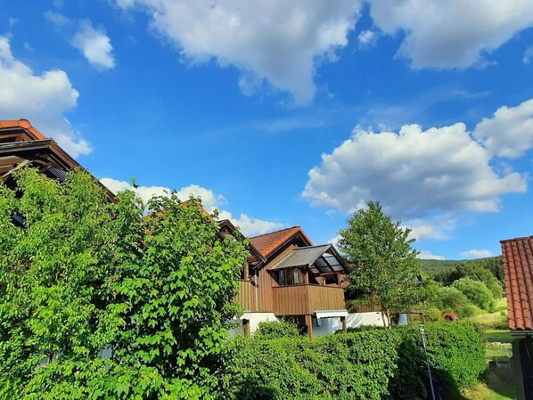 Art d. Gebäudes: Reihenhaus. Mitte 2019 wurde diese Wohnung durch den Eigentümer übernommen und umfassend renoviert. Eine neue Einrichtung, teils neue Böden, Elektrik, neue Heizungen und eine neue Warmwasserversorgung wurden installiert. Im Schlafzimmer wartet ein gemütliches großes 180x200cm Futonbett auf Sie. Vom sonnigen Balkon schauen sie über einen kleinen Bach auf das angrenzende Biotop. Im Wohnzimmer erwarten Sie eine gemütliche runde Essecke, eine bequeme Couch sowie zur Unterhaltung HD Sat TV, Wii Spielkonsole, BD Player und eine Hifi Anlage. Die Küche ist komplett ausgestattet mit Ceranfeld, Kühlschrank mit Eisfach, Mikrowelle mit Grillfunktion und natürlich allen Kochutensilien. Kaffeemaschine (Senseo), Toaster und Wasserkocher sind natürlich vorhanden. Das Badezimmer mit Badewanne und Dachfenster ist hell und freundlich. Die Schlafcouch im Wohnzimmer ist durch eine Liegefläche von 200x140 groß und bequem. Für den Sommerlichen Grillabend ist eine Elektrogrill vorhanden. Zusätzlich verfügt die Wohnung über W-Lan, Rauchmelder, Luftreiniger mit Hepa14 Filter, Spender zur Handdesinfektion, Erste Hilfe Kasten und Feuerlöscher sowie einen Fahrradständer am Eingang. Die Wohnung liegt im Obergeschoss und hat einen eigenen Außeneingang über einen Laubengang, der über eine Treppe erreicht wird.
