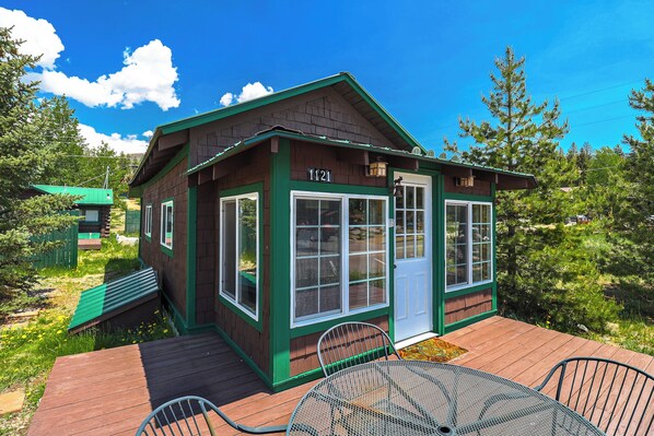 There are two outdoor areas at this home. The quaint deck off the front of the home, offers plenty of fresh mountain air and a place to soak in the serene mountains and lively town atmosphere. Around the back of the cabin is a more private firepit area, with a privacy fence (however, it is not completely fenced in for dogs), perfect after those sun-soaked summer days and winding down in the cool evening breeze.