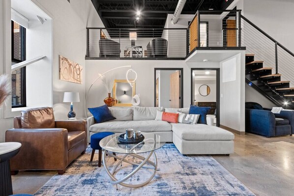 Enjoy this stylish, 3-bedroom, 2 bath downtown loft. This rare find has it all: city views, soaring ceilings, modern decor, & fully equipped kitchen. Kick back on our sprawling sectional, tune in to the game on our 60” Hisense TV, or cozy up with a book in front of our electric fireplace in the loft. This modern space boasts a king, queen, (2) twin beds, & in-unit washer/dryer combo. Enjoy free access to our community room, rooftop patio, and gym. FREE shuttle to/from Lambeau on game day.