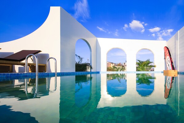 Modern hotel with rooftop pool