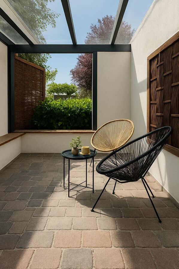 ⁃ Eine kleine Sitzgelegenheit im Außenbereich darf natürlich benutzt werden, die Wohnung hat eine Anbindung an eine Terrasse zum Verweilen.