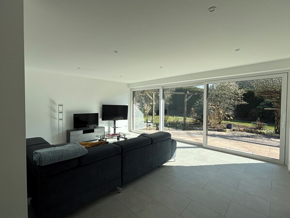 Die komplett neue, abgeschlossene rund 100 qm große Wohnung besteht aus zwei Schlafräumen, einem großen Wohnzimmer mit Schlafsofa, einem modernen Bad mit Regendusche & Fenster, großem Essplatz und offener, Küche, Induktionsherd, Backofen, Spülmaschine, Kühl- und Gefrierschrank, Waschmaschine & Trockner, teilweise Fußbodenheizung, einem Flachbild-TV, High-Speed-WLAN uvm.