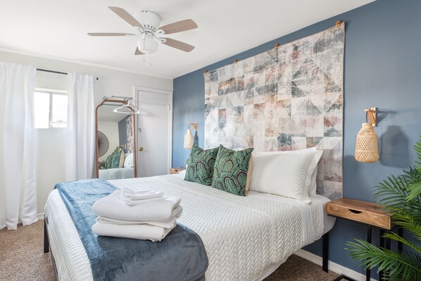 • Sleeps 4: King bed + Full bed