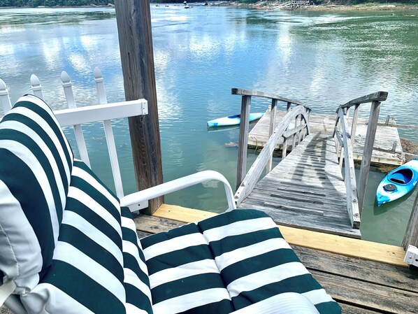 My husband and I had a wonderful stay and especially enjoyed the incredible view and access to the water. (They have paddles and life jackets for the kayaks) We spent hours both nights on the dock and loved getting to take the kayaks out. The living space had everything we needed with lots of natural light from the wrap around windows with view of the water from all sides!! We forgot to bring coffee and they ended up having some in the kitchen already! The boat house is attached to another house which has a porch adjacent to the dock and a few apartments behind it, but it still felt peaceful to us being in the house and on the dock. the dock is attached directly to the boat house! We absolutely loved staying here and wish we had planned to stay a bit longer. We definitely recommend and hope to stay here again!